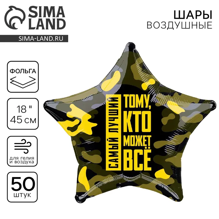Воздушные шары фольгированные 18" «Тому, кто может всё», звезда, 50 шт. — Характеристики