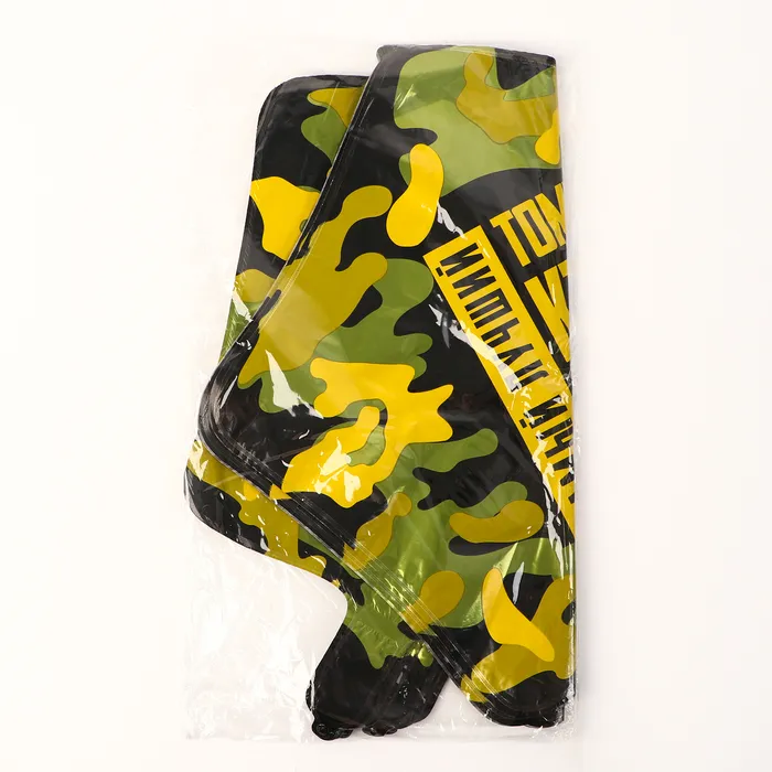 Фольгированный шар в виде звезды с надписями: «Самый лучший» и «Тому, кто может всё» можно использовать в качестве дополнения к подарку любимому мужчине, парню или мальчику. Оформление в стиле камуфляжа подходит для оформления помещения для празднования Дня защитника Отечества.
