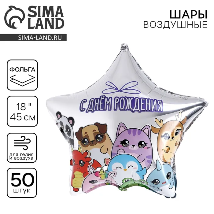 Воздушные шары фольгированные 18" «Зверушки», звезда, 50 шт. — Характеристики