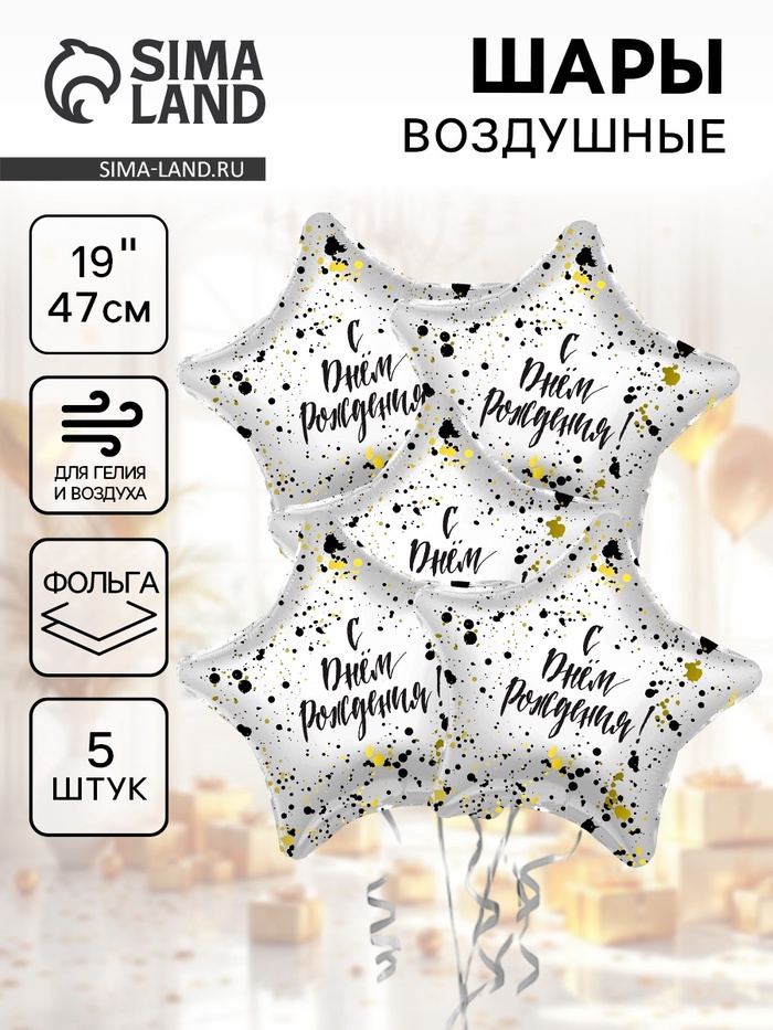 Воздушные шары фольгированные 19" «С Днём рождения!», 5 шт. — Характеристики