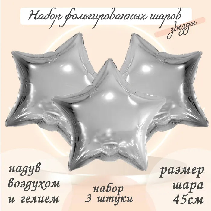 Воздушные шары фольгированные 19" «Звезда», 3 шт., серебряные — Характеристики