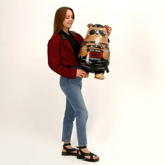 Фольгированный шар в виде медведя-полицейского станет отличным дополнением к подарку для лучшей подруги! Медведь держит табличку с надписью: «Все твои горячие желания исполнятся», которая обязательно развеселит гостей на празднике.