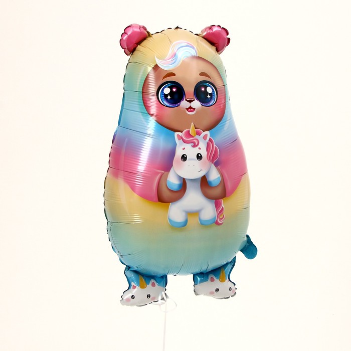 Фольгированный шар в виде милого мишки, держащего в лапах игрушку-единорога, подойдёт для множества целей. Он может просто стать игрушкой для ребёнка или с его помощью можно оформить детский день рождения, комнату при выписке из роддома и многое другое.