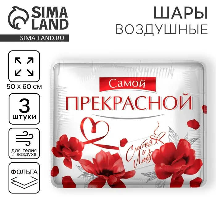 Воздушные шары фольгированные 31" «Самой прекрасной», квадрат, 3 шт. — Характеристики