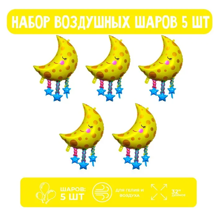 Воздушные шары фольгированные 32" «Спящая луна», 5 шт. — Характеристики