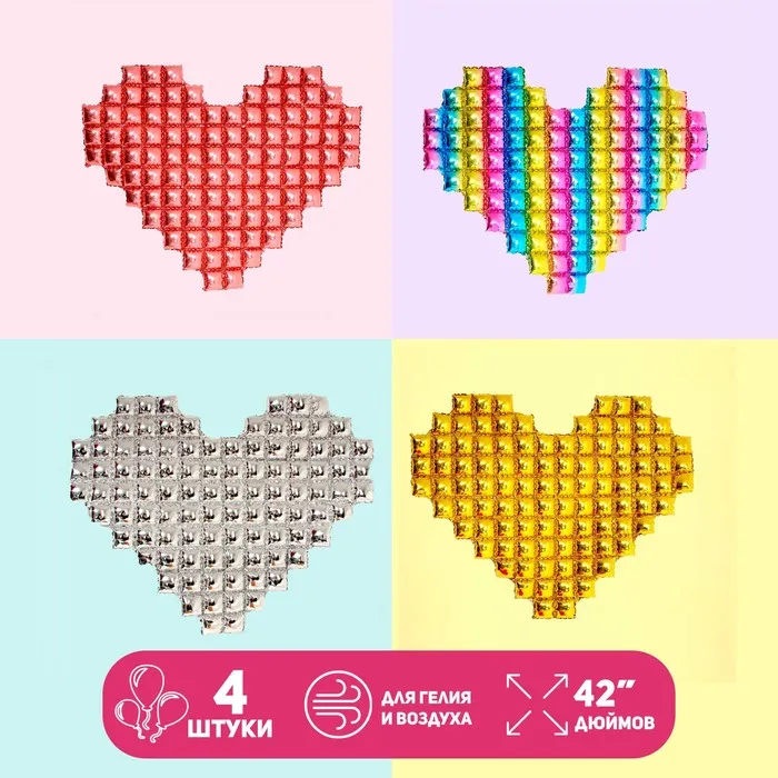 Воздушные шары фольгированные, набор «Сердца. Пиксель», 4 шт. — Характеристики