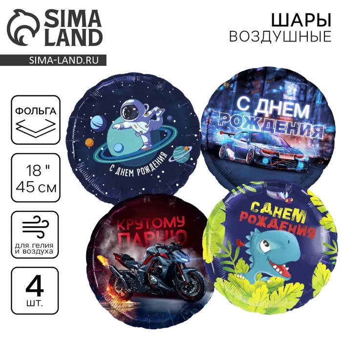 Воздушные шары фольгированные «С днём рождения», набор 4 шт. — Характеристики