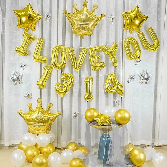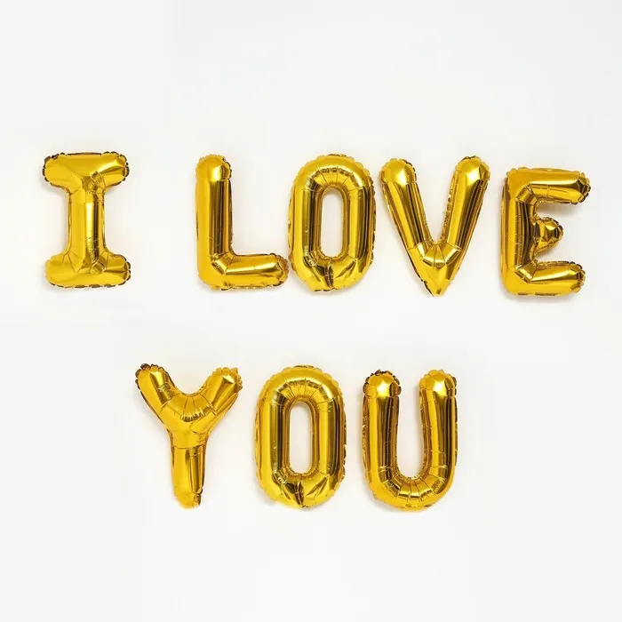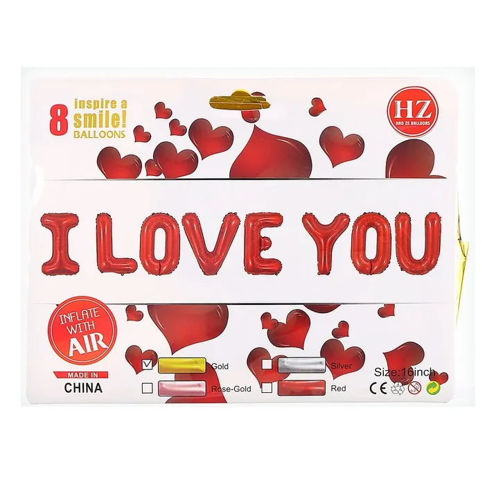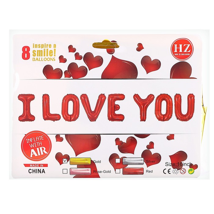 Воздушные шары фольгированный 16", гирлянда «Я люблю тебя», золотая — Характеристики