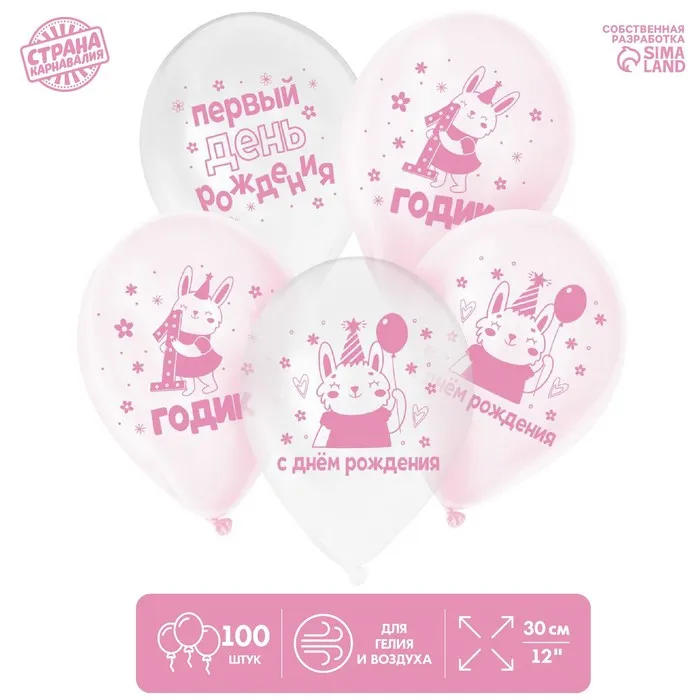 Воздушные шары латексные 12" «1 годик. Девочка», 100 шт. — Характеристики