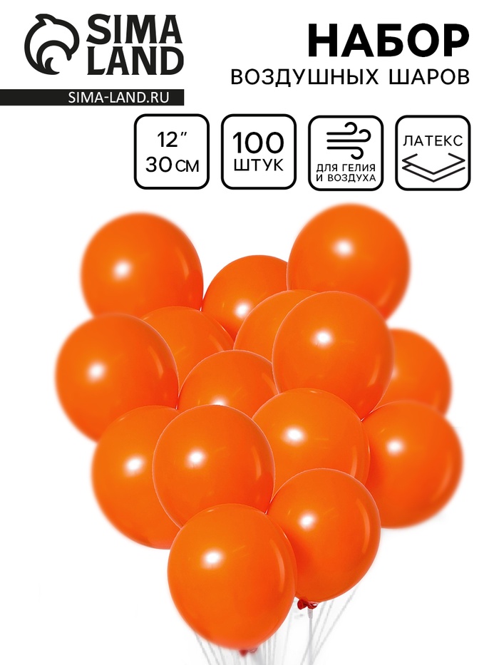 Воздушные шары латексные 12", 100 шт., оранжевые — Характеристики
