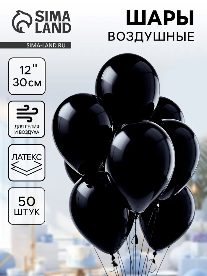 Воздушные шары латексные 12", 50 шт., чёрные — Характеристики