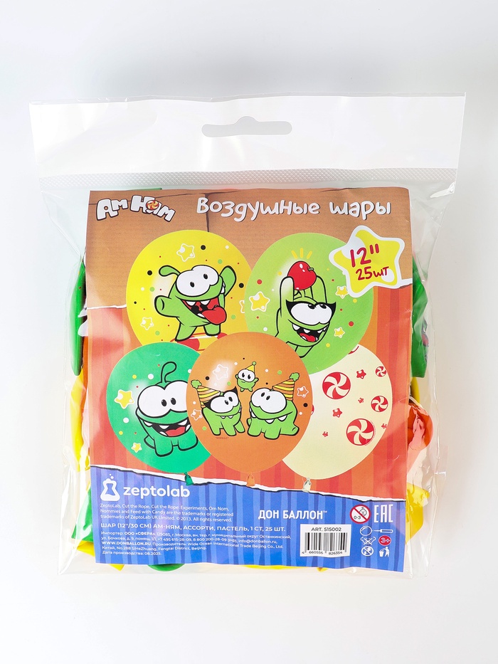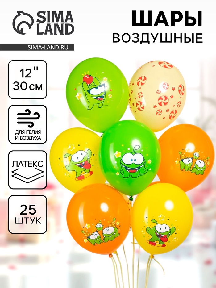 Воздушные шары латексные 12" «Ам Ням», 25 шт. — Характеристики