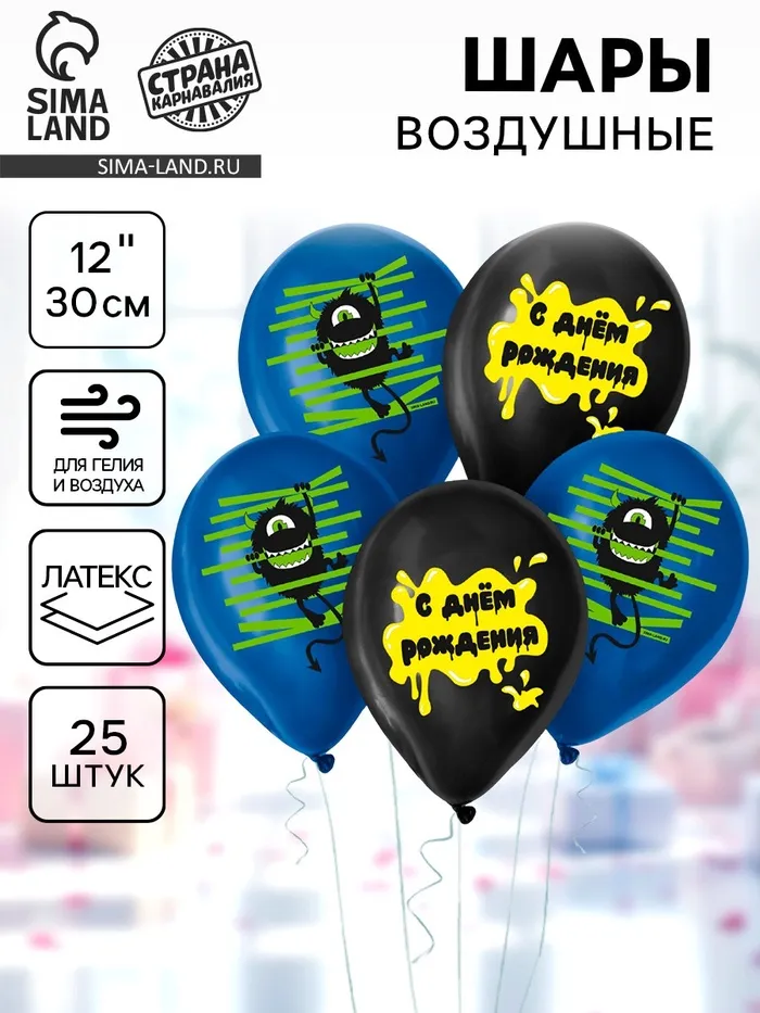 Воздушные шары латексные 12" «C Днём Рождения», 25 шт. — Характеристики