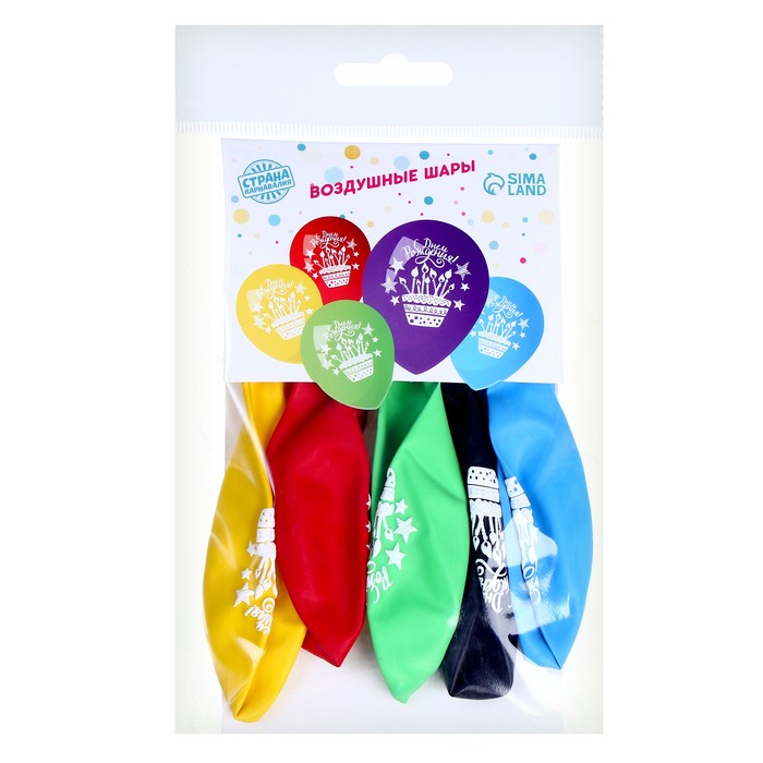 Воздушные шары латексные 12" «День рождения», 5 шт. — Характеристики