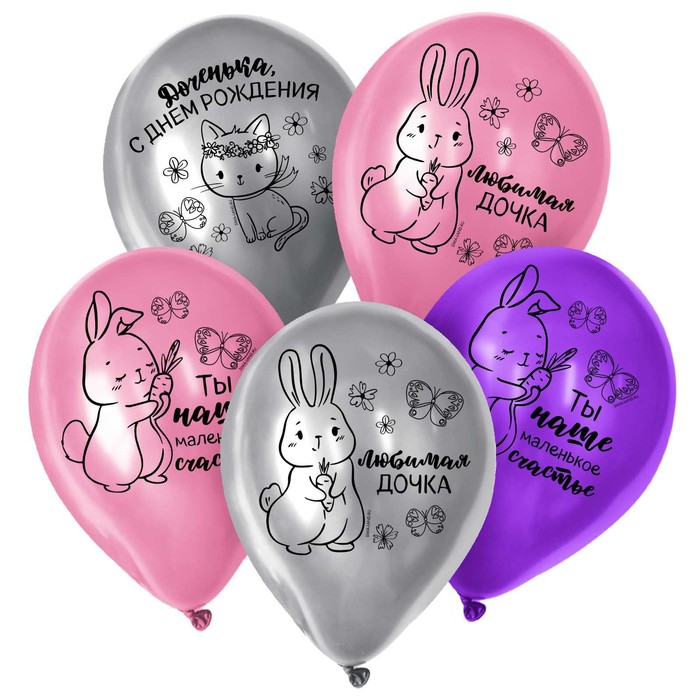 Воздушные шары латексные 12" «Доченька, с днём рождения», 25 шт. — Характеристики