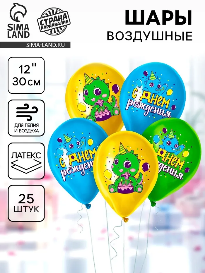 Воздушные шары латексные 12" «Дракоша», 25 шт. — Характеристики