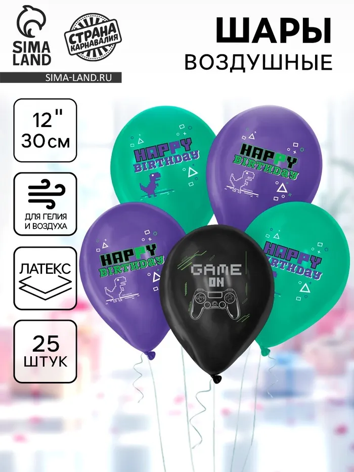 Воздушные шары латексные 12" Game on, 25 шт. — Характеристики