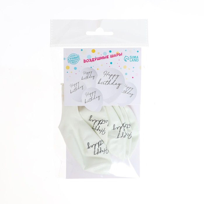 Воздушные шары латексные 12" Happy birthday, 5 шт. — Характеристики