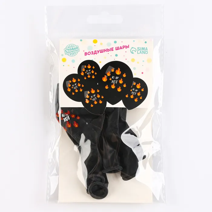 Набор латексных шаров «Ю ар хот» — это чёрные шары диаметром 12 дюймов с оригинальными надписями. Шары подойдут для ярких вечеринок и мероприятий с забавными тематическими элементами. Их можно надувать как воздухом, так и гелием.