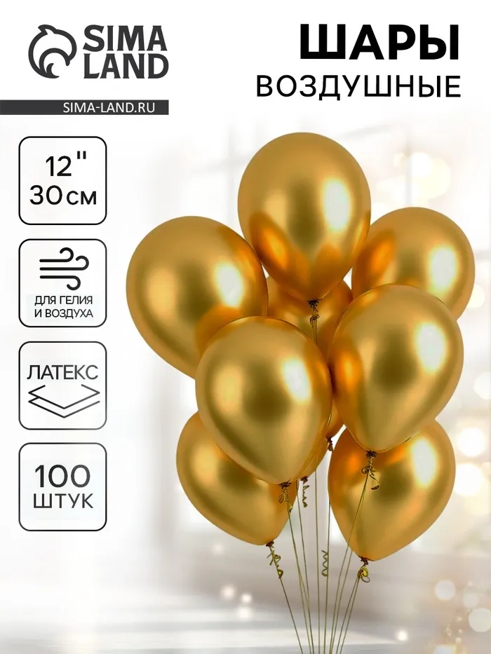 Воздушные шары латексные 12" «Хром», 100 шт., золотые — Характеристики