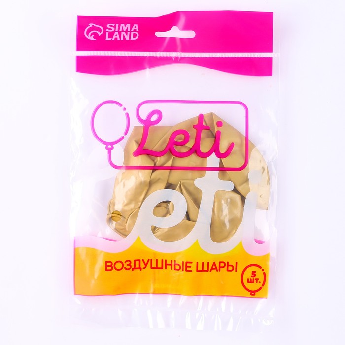 Воздушные шары латексные 12" «Хром», 5 шт., золотые — Характеристики