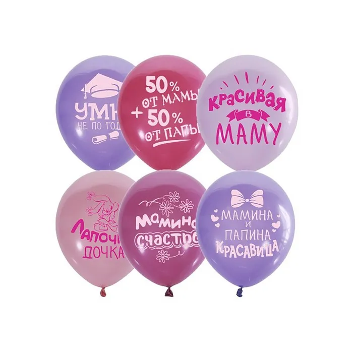 Воздушные шары латексные 12" «Хвалебные для девочек», 5 шт., 2-сторонние — Характеристики