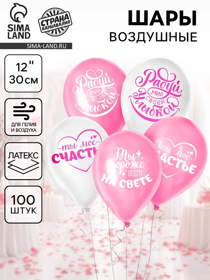 Воздушные шары латексные 12" «Хвалебные, любимым», 100 шт. — Характеристики
