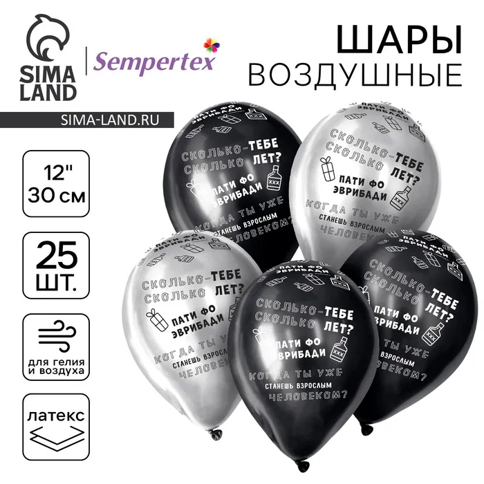 Воздушные шары латексные 12" «Когда ты станешь взрослым», 25 шт., хром, МИКС — Характеристики