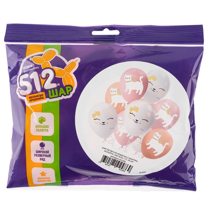 Воздушные шары латексные 12" «Кошечка с бантом», 25 шт., МИКС — Характеристики