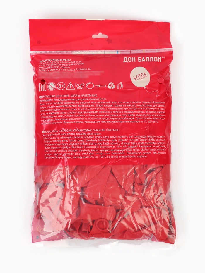 Воздушные шары латексные 12" «Красный», 100 шт. — Характеристики