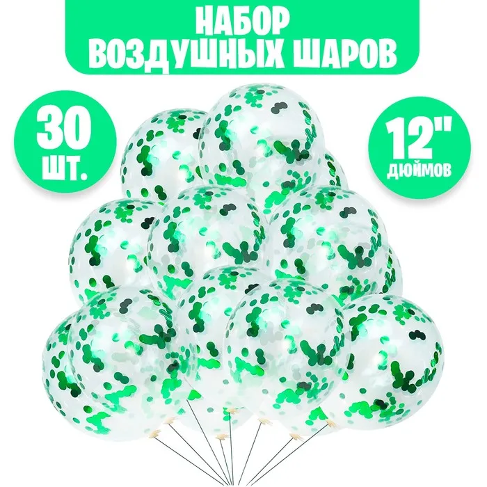 Воздушные шары латексные 12", кристалл, 30 шт. с конфетти 100 г, d=2 см — Характеристики