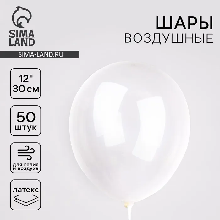 Воздушные шары латексные 12", кристалл, 50 шт., прозрачные — Характеристики