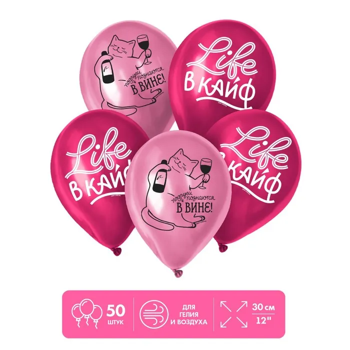 Воздушные шары латексные 12" «Life в кайф», 50 шт. — Характеристики