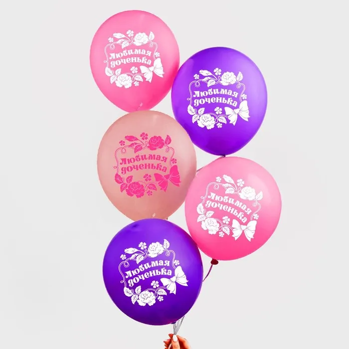 Воздушные шары латексные 12" «Любимой доченьке», 5 шт. — Характеристики