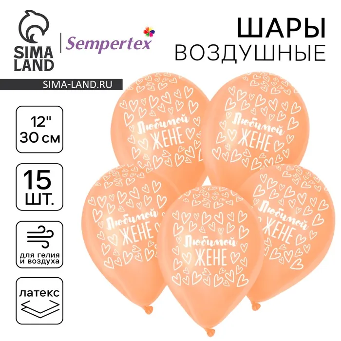 Воздушные шары латексные 12" «Любимой жене», 15 шт. — Характеристики