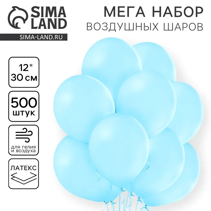 Воздушные шары латексные 12", макарунс, 500 шт., бирюзовые — Характеристики