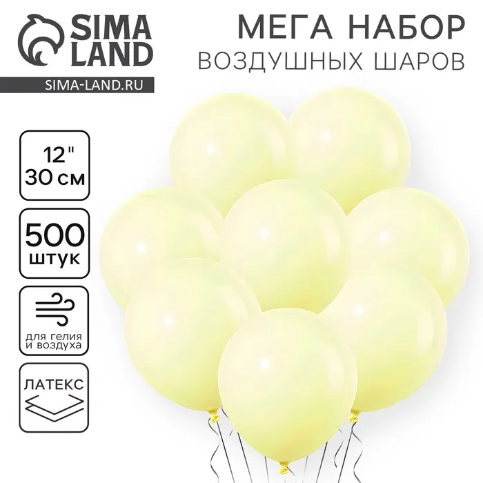 Воздушные шары латексные 12" «Макарунс», 500 шт., жёлтые — Характеристики