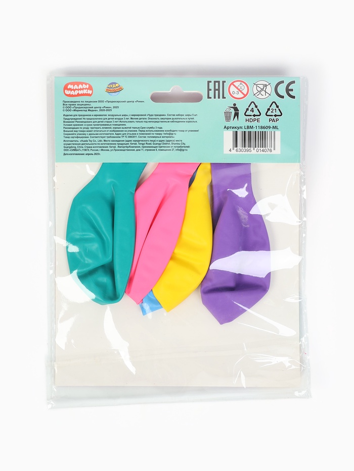 Воздушные шары латексные 12" «Малышарики», набор 5 шт. — Характеристики