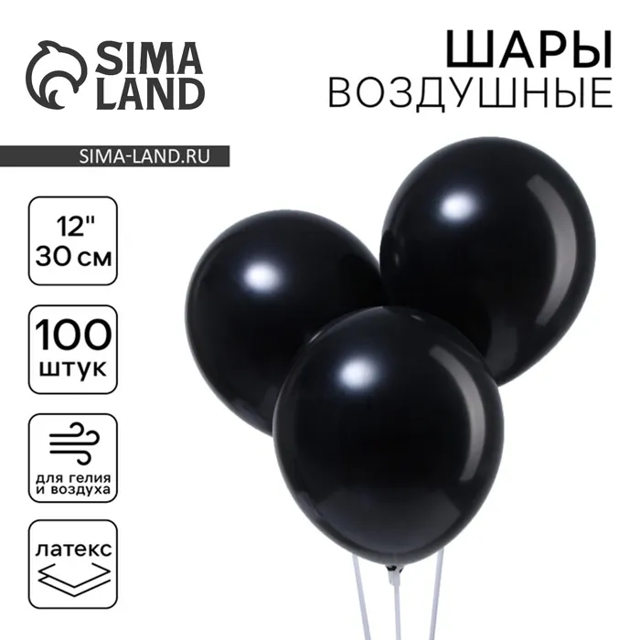 Воздушные шары латексные 12", металл, 100 шт., чёрные — Характеристики