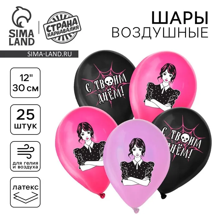 Воздушные шары латексные 12" «Мрачная девочка», 25 шт. — Характеристики