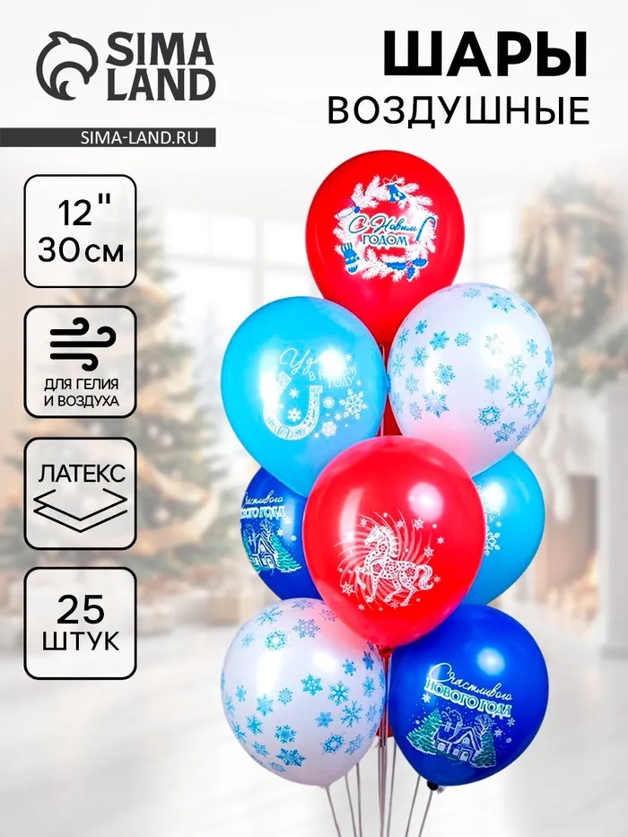 Воздушные шары латексные 12" «Новогодняя Лошадь», 25 шт., 2-сторонние, МИКС — Характеристики