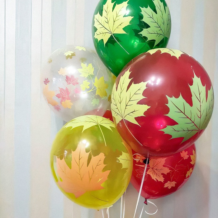 Воздушные шары латексные 12" «Осенние листья», 25 шт., шелкография, 5-сторонние, МИКС — Характеристики