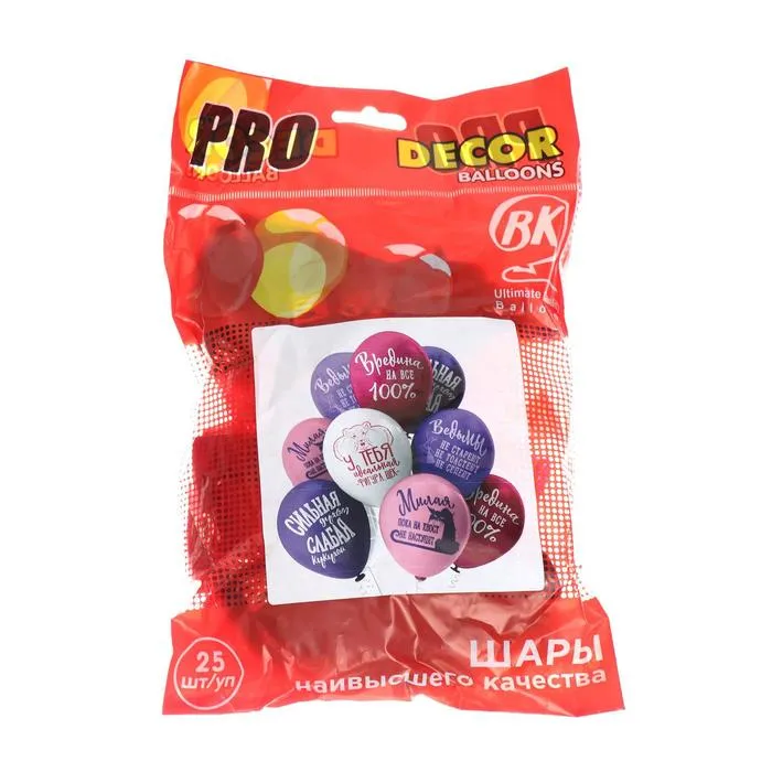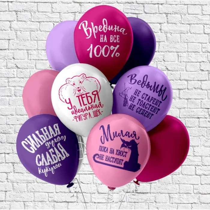 Воздушные шары латексные 12" «Оскорбления для неё!», 25 шт., шелкография, 2-сторонние, МИКС — Характеристики