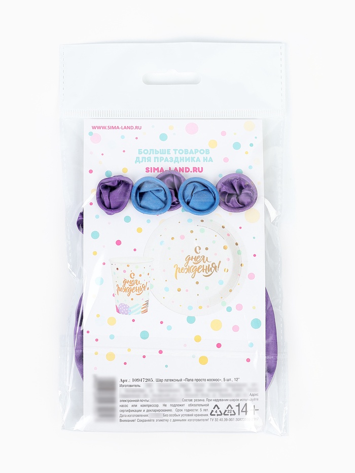 Воздушные шары латексные 12" «Папа просто космос», набор 5 шт. — Характеристики