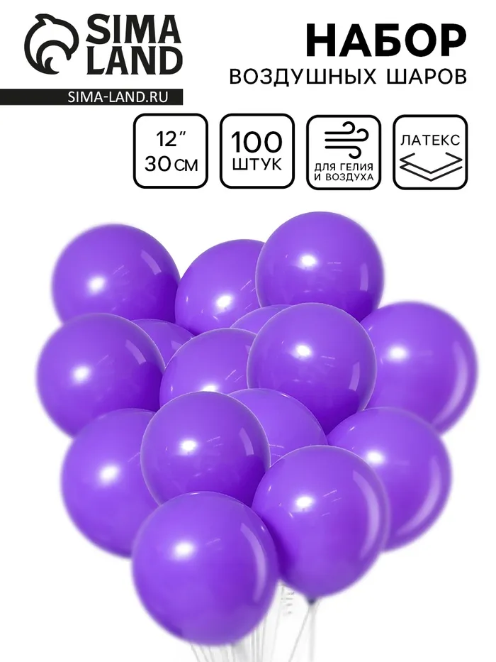 Воздушные шары латексные 12", пастель, 100 шт., сиреневые — Характеристики