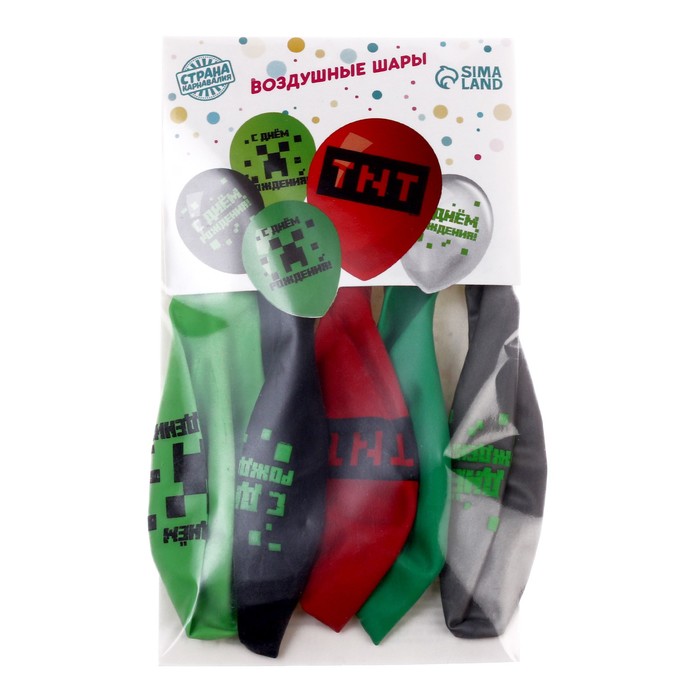 Воздушные шары латексные 12" «Пиксели», 5 шт. — Характеристики