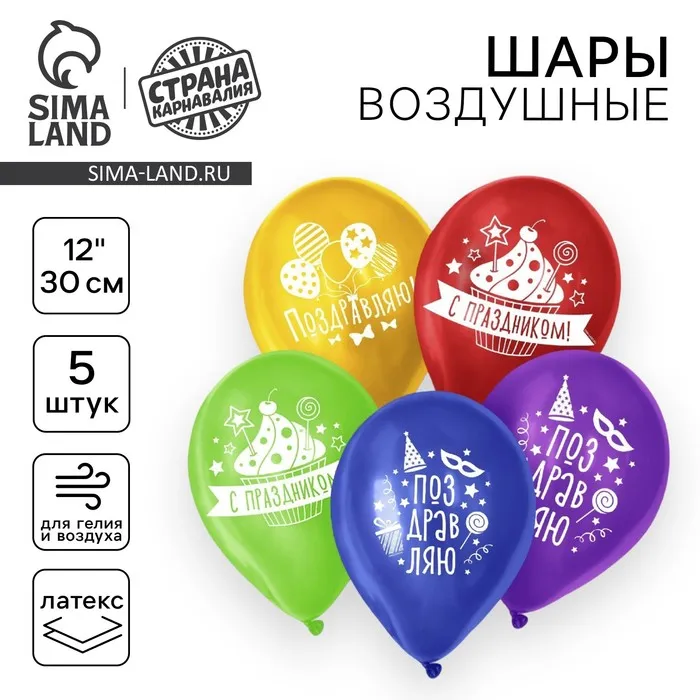Воздушные шары латексные 12 «Поздравляю», пастель, 5 шт., МИКС — Характеристики