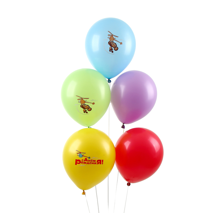 Воздушный шар латексный 12" «Чебурашка» цветной принт, набор 5 шт.