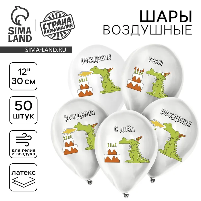 Воздушные шары латексные 12" «Праздничный дракончик», 50 шт. — Характеристики