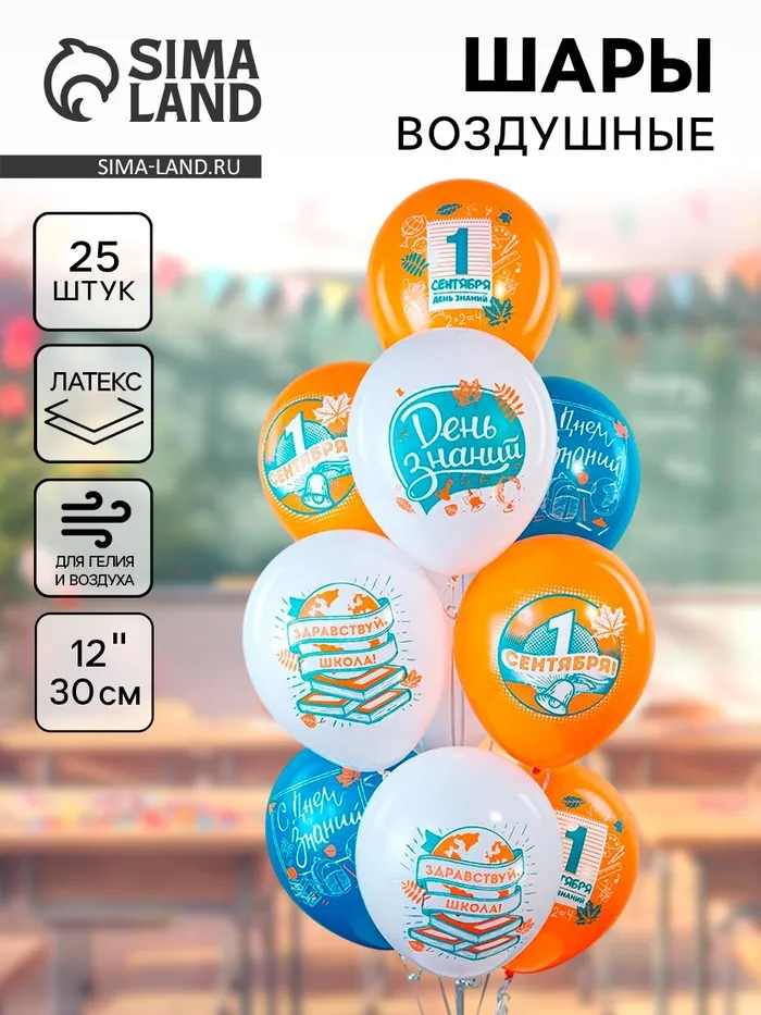 Воздушные шары латексные 12" «Праздник 1 Сентября!», 25 шт., МИКС — Характеристики